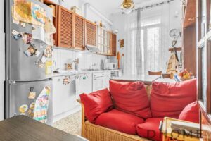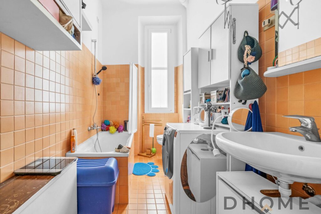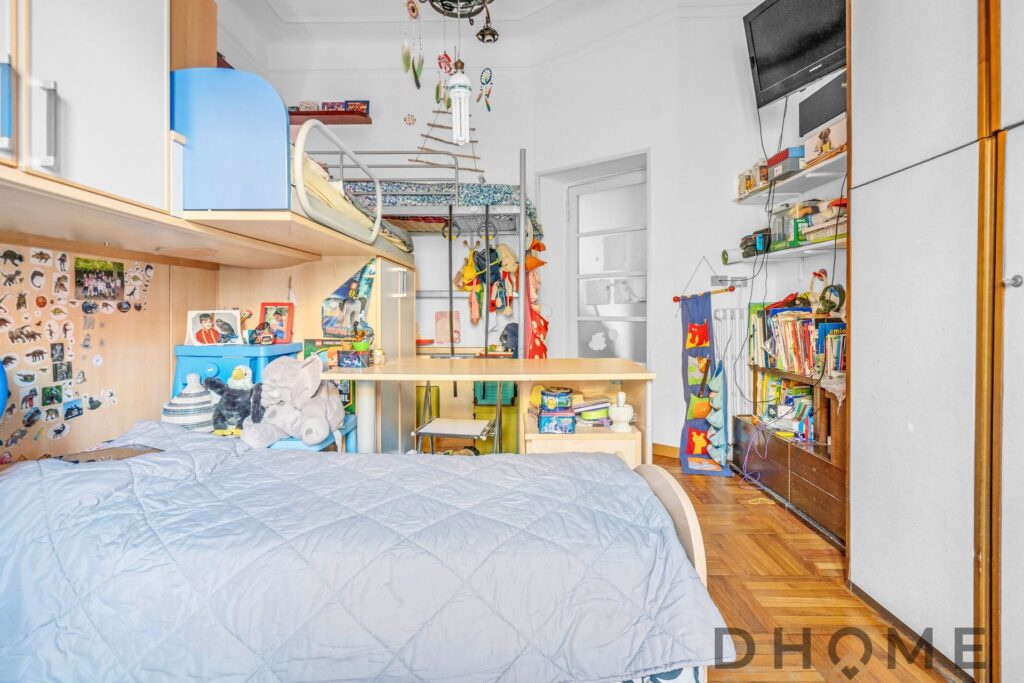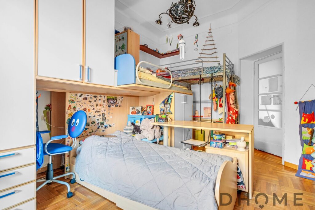 Il bagno è dotato di una comoda vasca da bagno e di una finestra che garantisce aria e luce naturale. Le due camere da letto sono entrambe ampie e rivestite con i pavimenti originali e ben mantenuti, fra cui un bellissimo parquet originale a listelli nella prima camera, servita dal secondo balcone, altro punto di forza dell’appartamento.