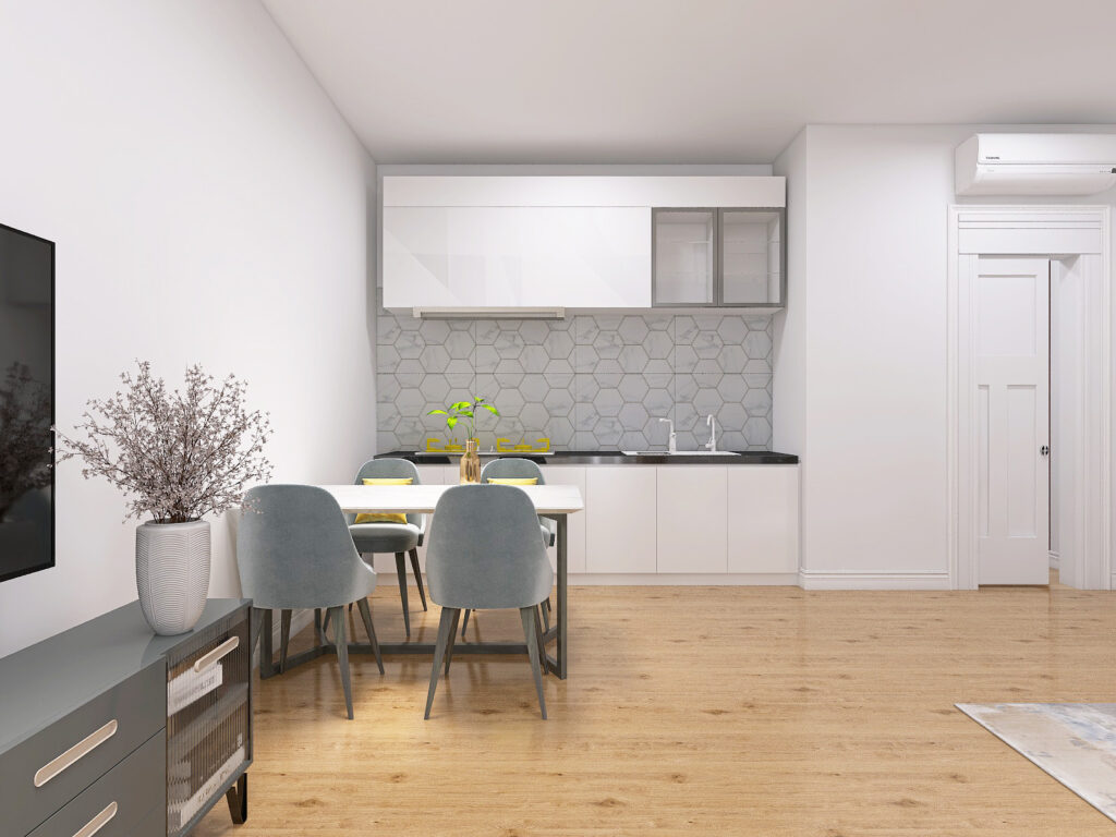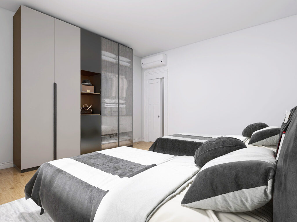 Gli ambienti sono ben distribuiti, la soluzione è composta da ingresso, soggiorno con balcone, cucinotto e due ampie camere matrimoniali ed infine doppi servizi.