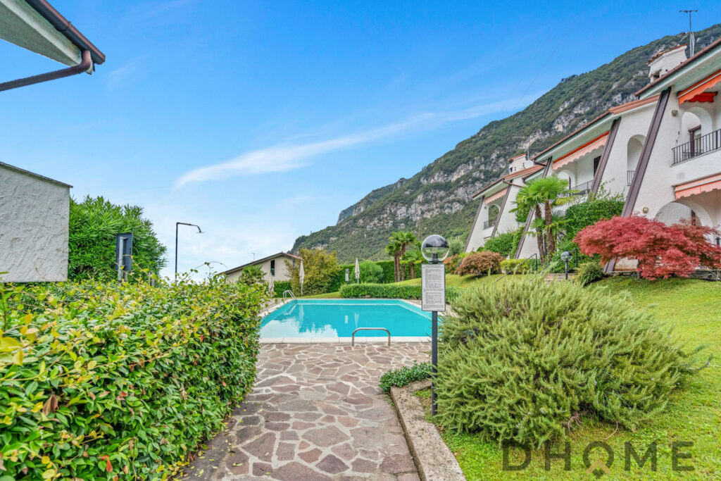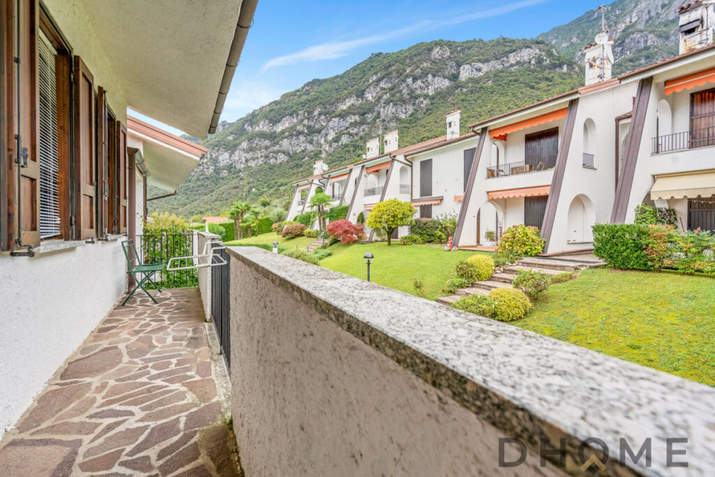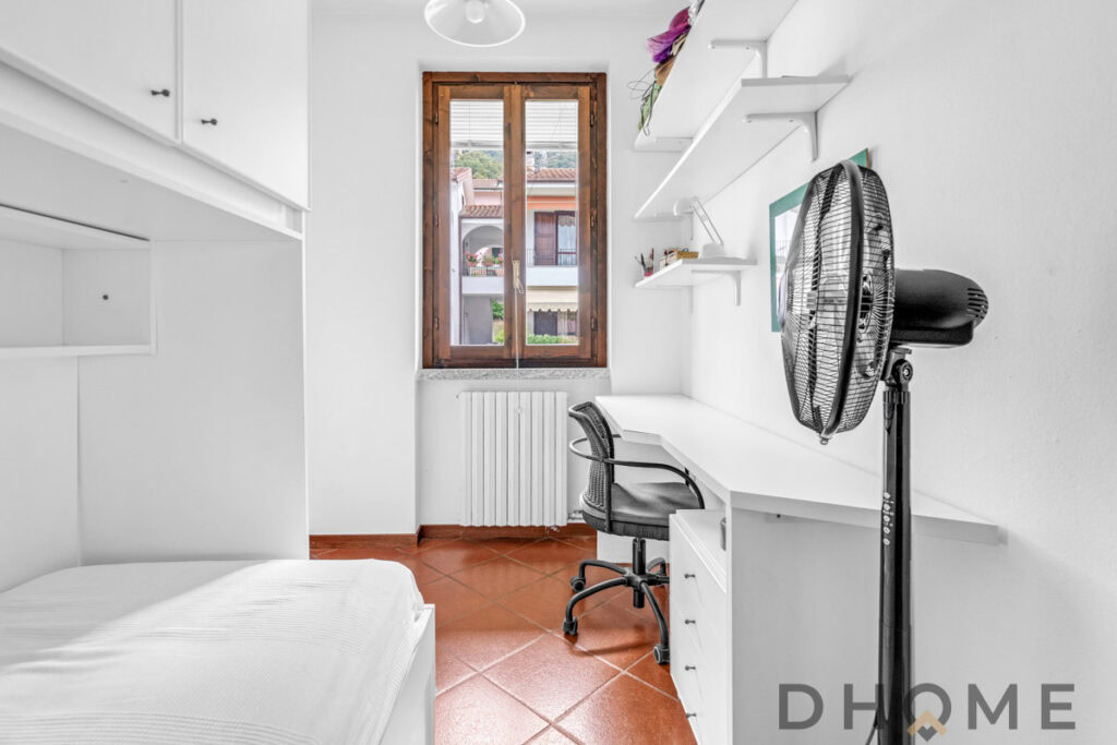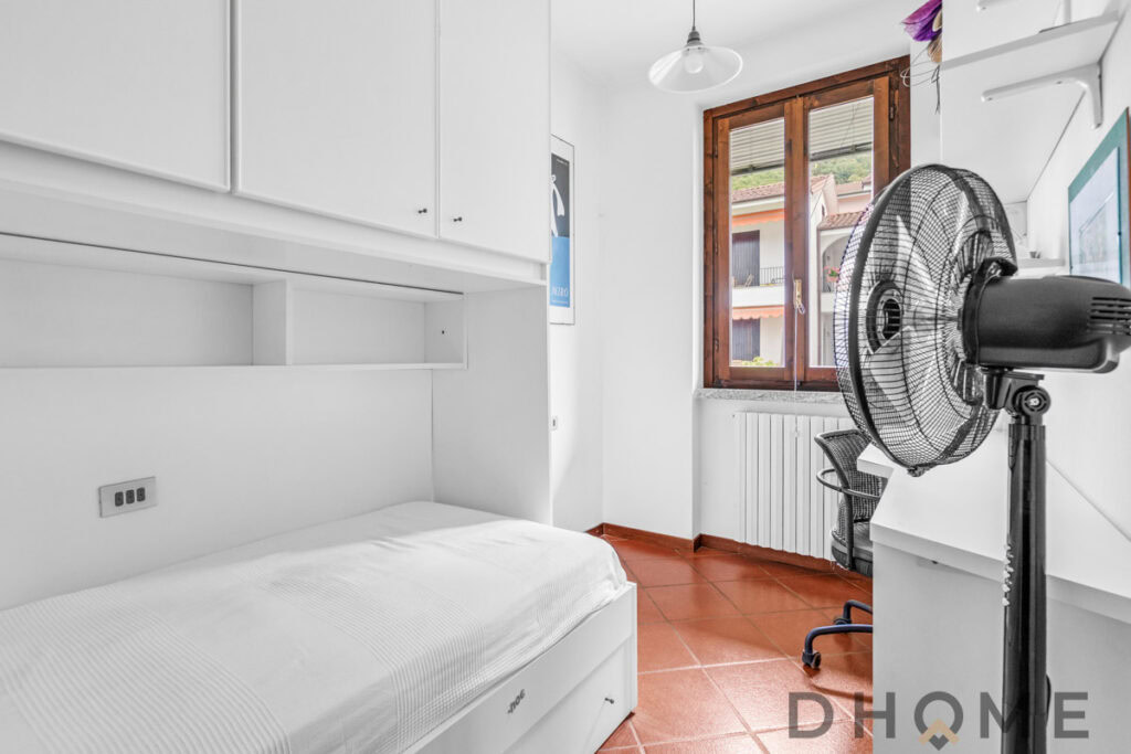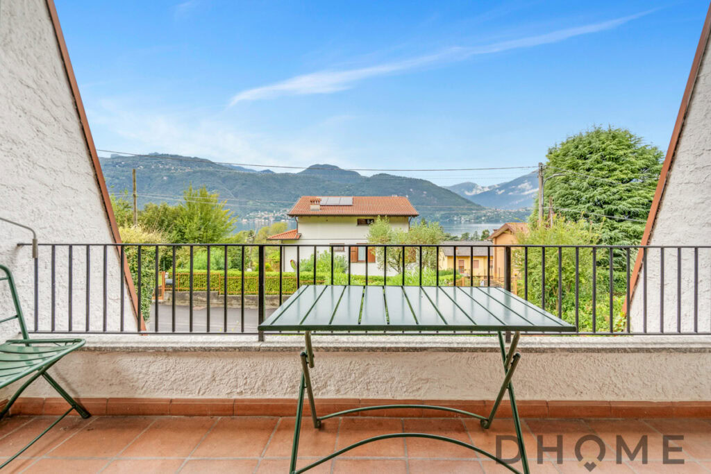 L’appartamento si distingue per la distribuzione funzionale degli spazi: l’ingresso si apre sul soggiorno con angolo cottura, dal quale si accede al terrazzino vivibile con affaccio esterno e vista panoramica sul lago. Dal disimpegno si raggiunge la zona notte, composta da una camera matrimoniale con accesso al balconcino interno, una cameretta finestrata affacciata verso l’interno del residence e un bagno finestrato recentemente ristrutturato, completo di box doccia e rivestimenti moderni.
