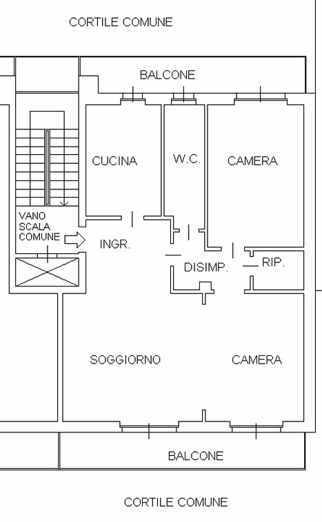 L’abitazione è composta da ingresso, soggiorno, cucina abitabile, due terrazzi, due camere da letto e bagno. Il riscaldamento è centralizzato.