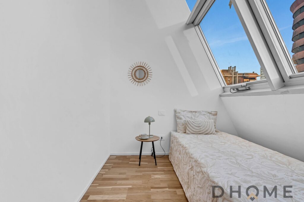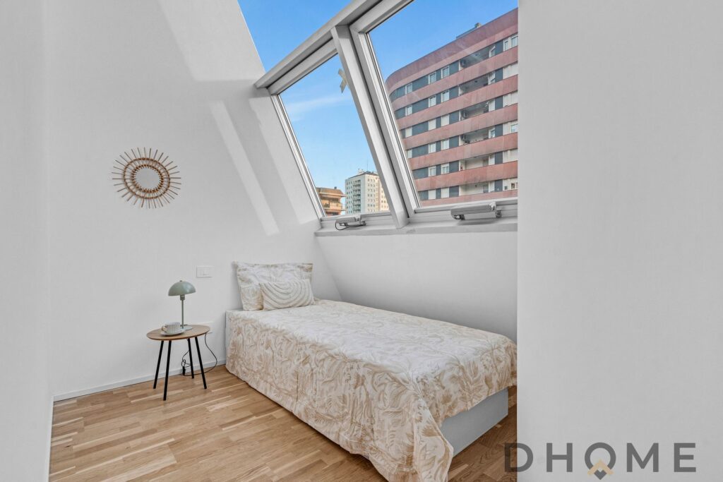 La camera matrimoniale è spaziosa e silenziosa, mentre la seconda camera – dotata di cabina armadio – si presta perfettamente come cameretta, studio o stanza ospiti.
