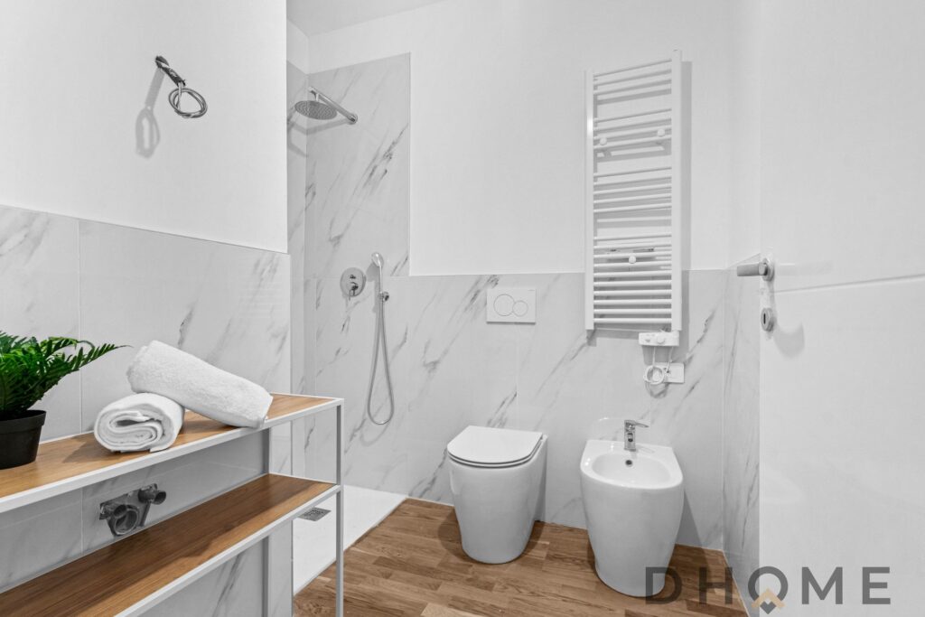 Il bagno finestrato è completo di doccia e sanitari in ceramica di alta qualità.