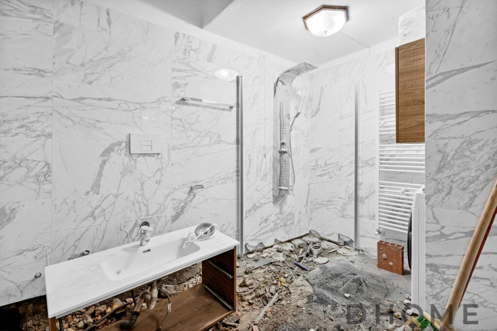 Dal patio all’ingresso si prosegue verso l’interno della proprietà: al primo livello si trova la zona giorno open space, luminosa e accogliente, con accesso diretto a un ampio balcone. Sullo stesso livello si trova il bagno padronale, attualmente in fase di ristrutturazione da ultimare.