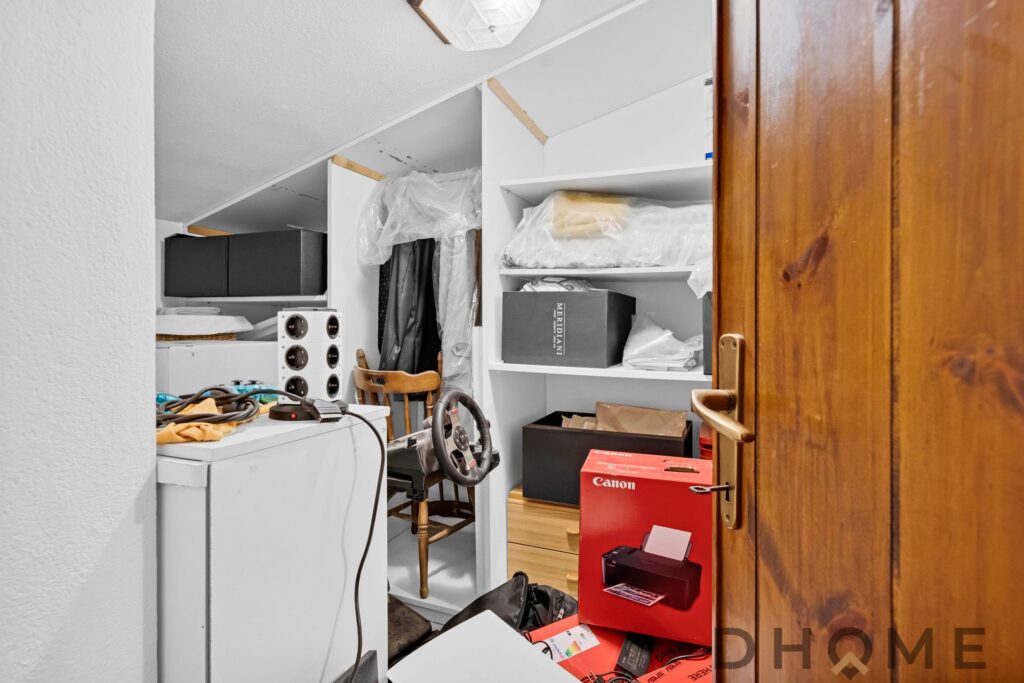 Tramite una scala interna si accede al livello superiore dedicato alla zona notte, che ospita due camere da letto, un bagno di servizio, un ripostiglio e un’ulteriore stanza versatile, utilizzabile come studio o locale hobby.
