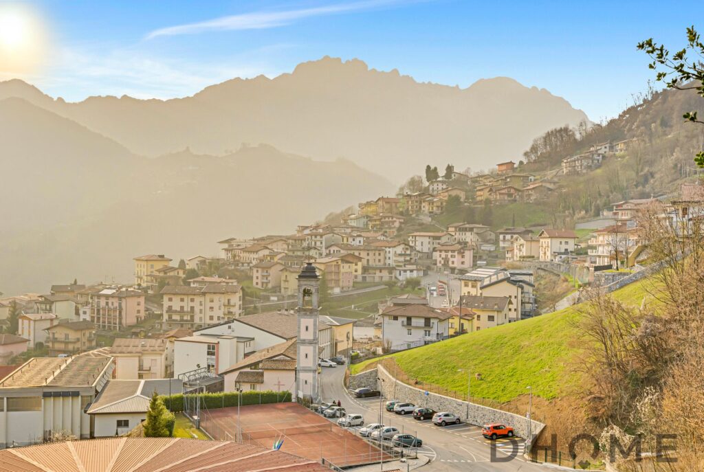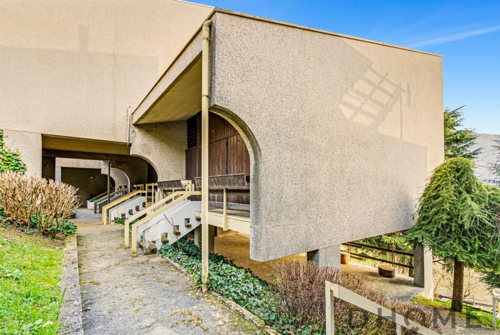 Dhome Real Estate propone in vendita a Gorno, in via Sant’Antonio 2, ampio e luminoso trilocale disposto su due livelli, situato al secondo piano di uno stabile dal caratteristico stile brutalista.