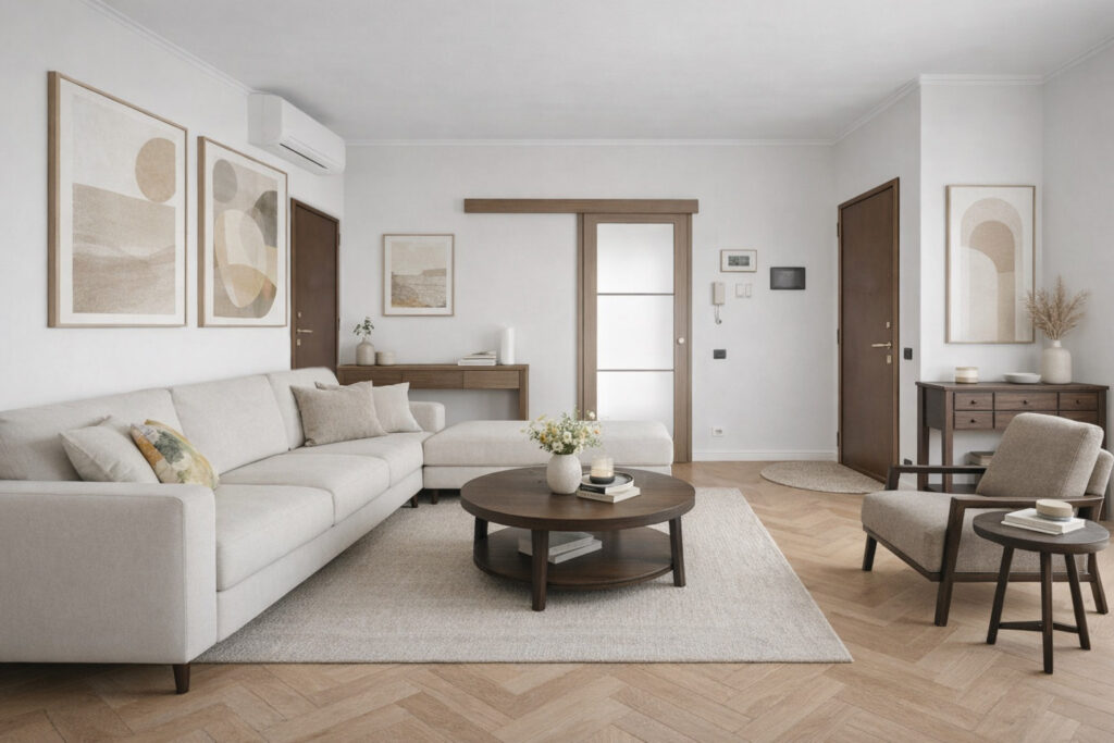L’appartamento è dotato di doppi vetri alle finestre, aria condizionata e porta blindata.