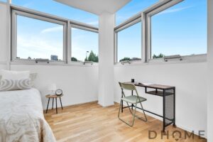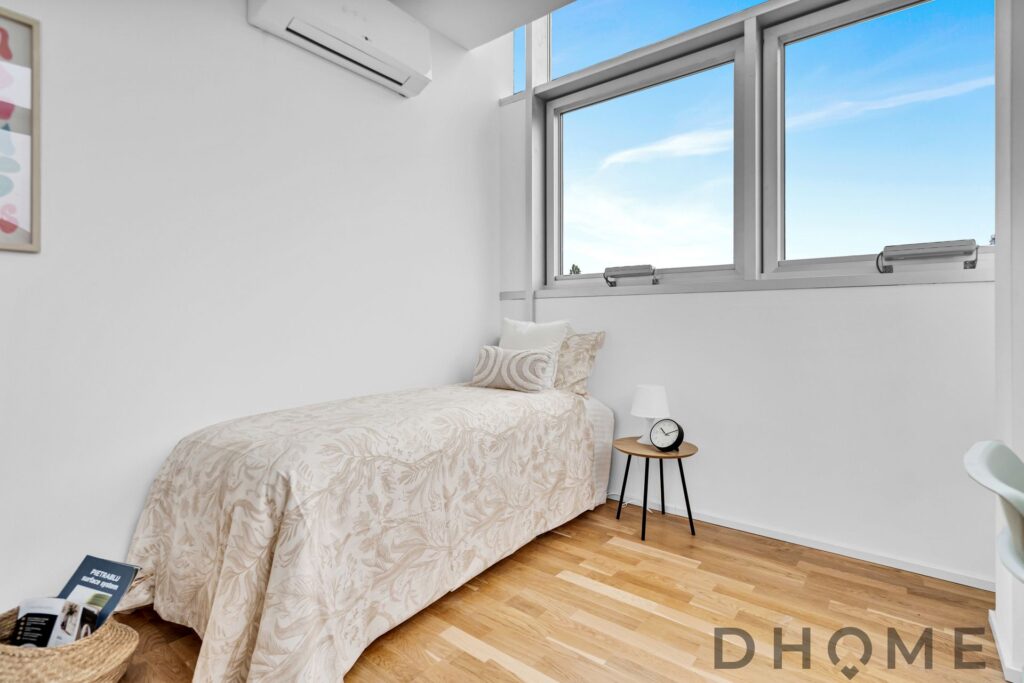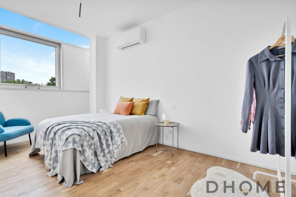 La camera matrimoniale è spaziosa e silenziosa, mentre la seconda camera – dotata di cabina armadio – si presta perfettamente come cameretta, studio o stanza ospiti.