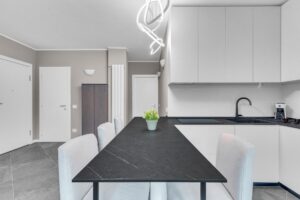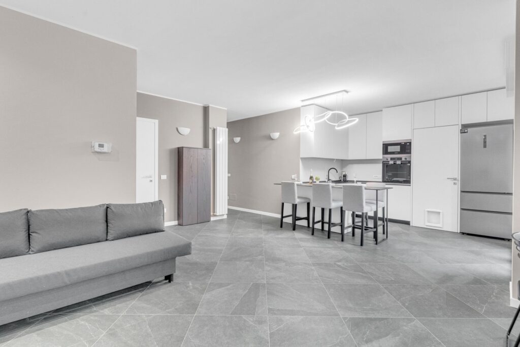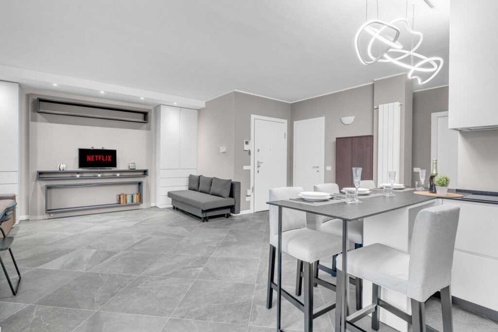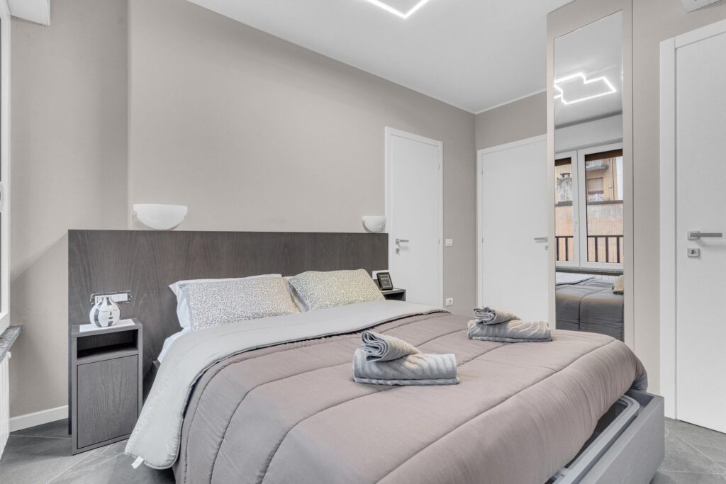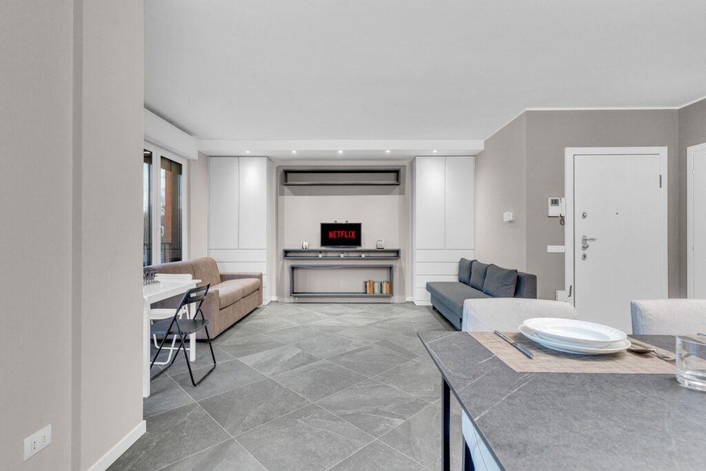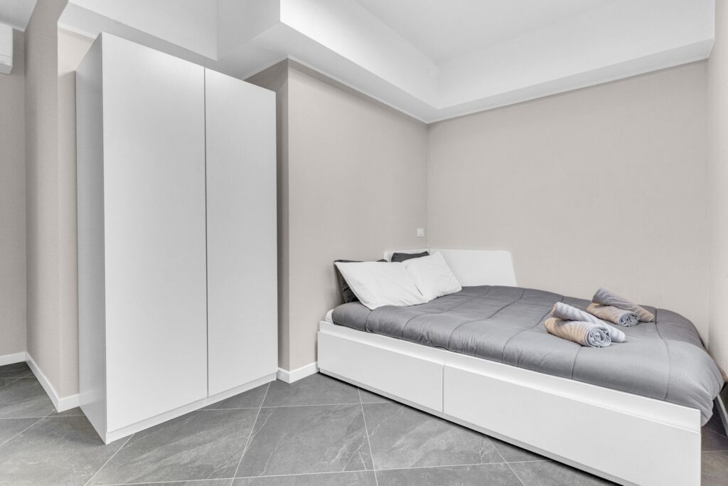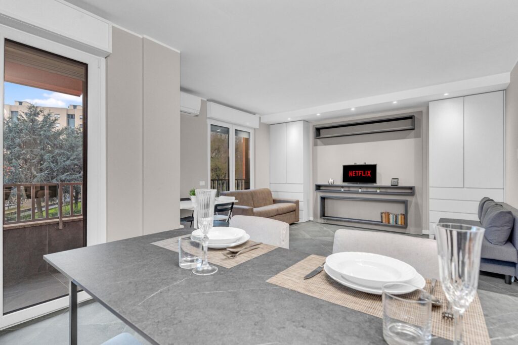 Gli spazi sono sfruttati in ogni dettaglio:l’arredo è su misura e l’immobile è composto da ingresso nel ampio soggiorno con cucina a vista che da accesso al balcone, un primo bagno finestrato e ripostiglio. La zona notte è composta da due camere, di cui una matrimoniale dotata di ampia cabina armadio e bagno privato.
