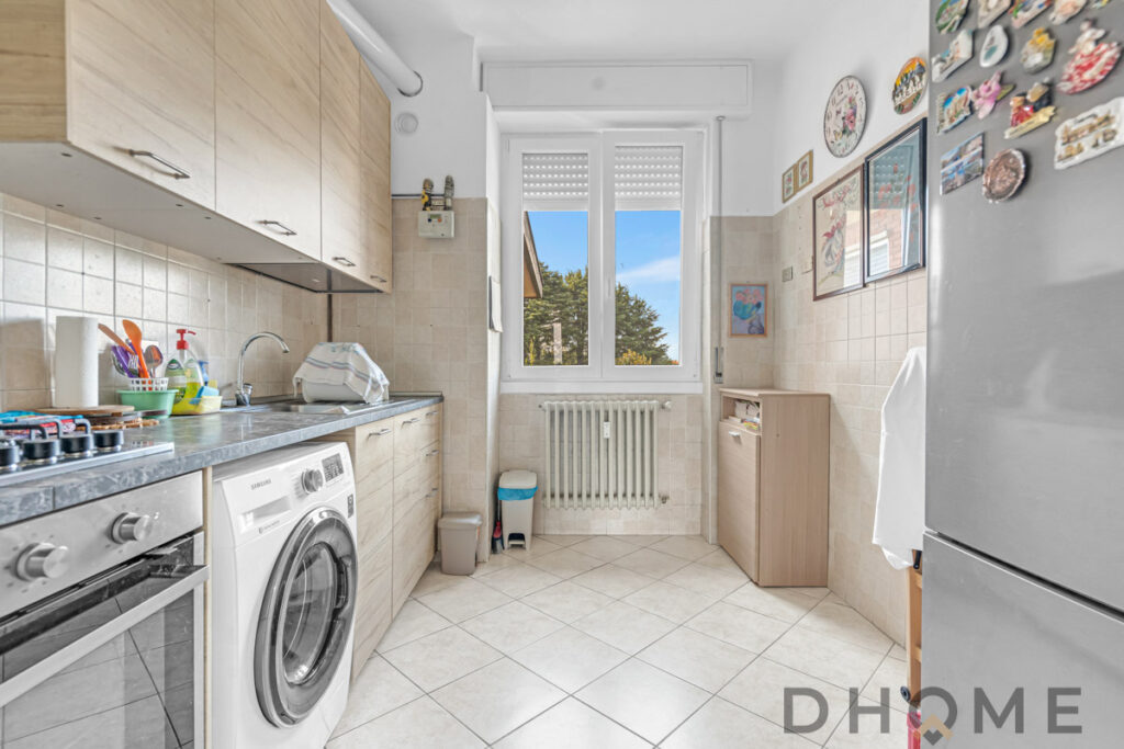 L’appartamento si distingue per la luminosità e l’ottima distribuzione degli spazi: la zona giorno affaccia su un lungo balcone garantendo luce naturale per gran parte della giornata. La cucina è abitabile, mentre le due camere da letto sono entrambe matrimoniali e di generosa metratura.