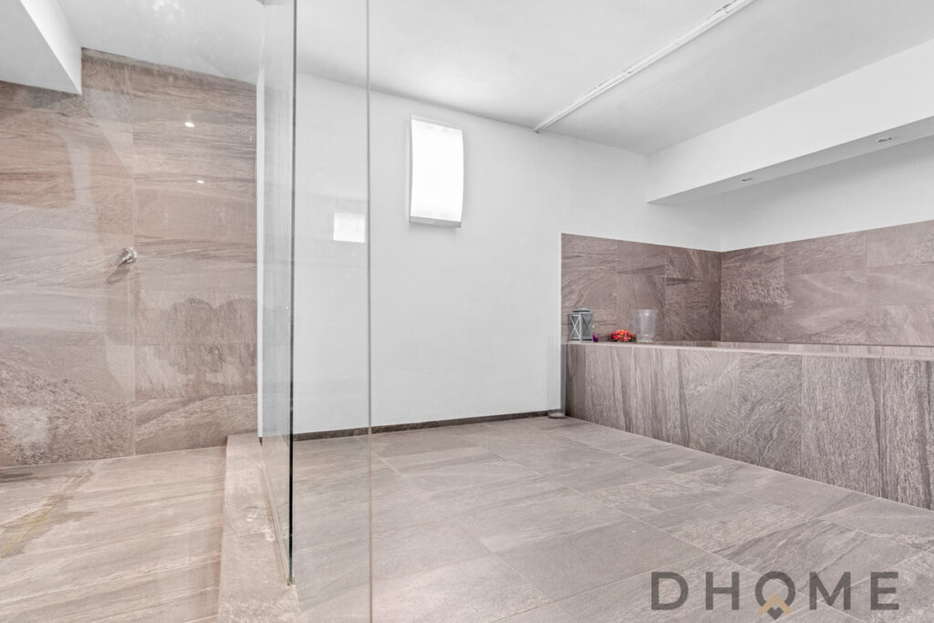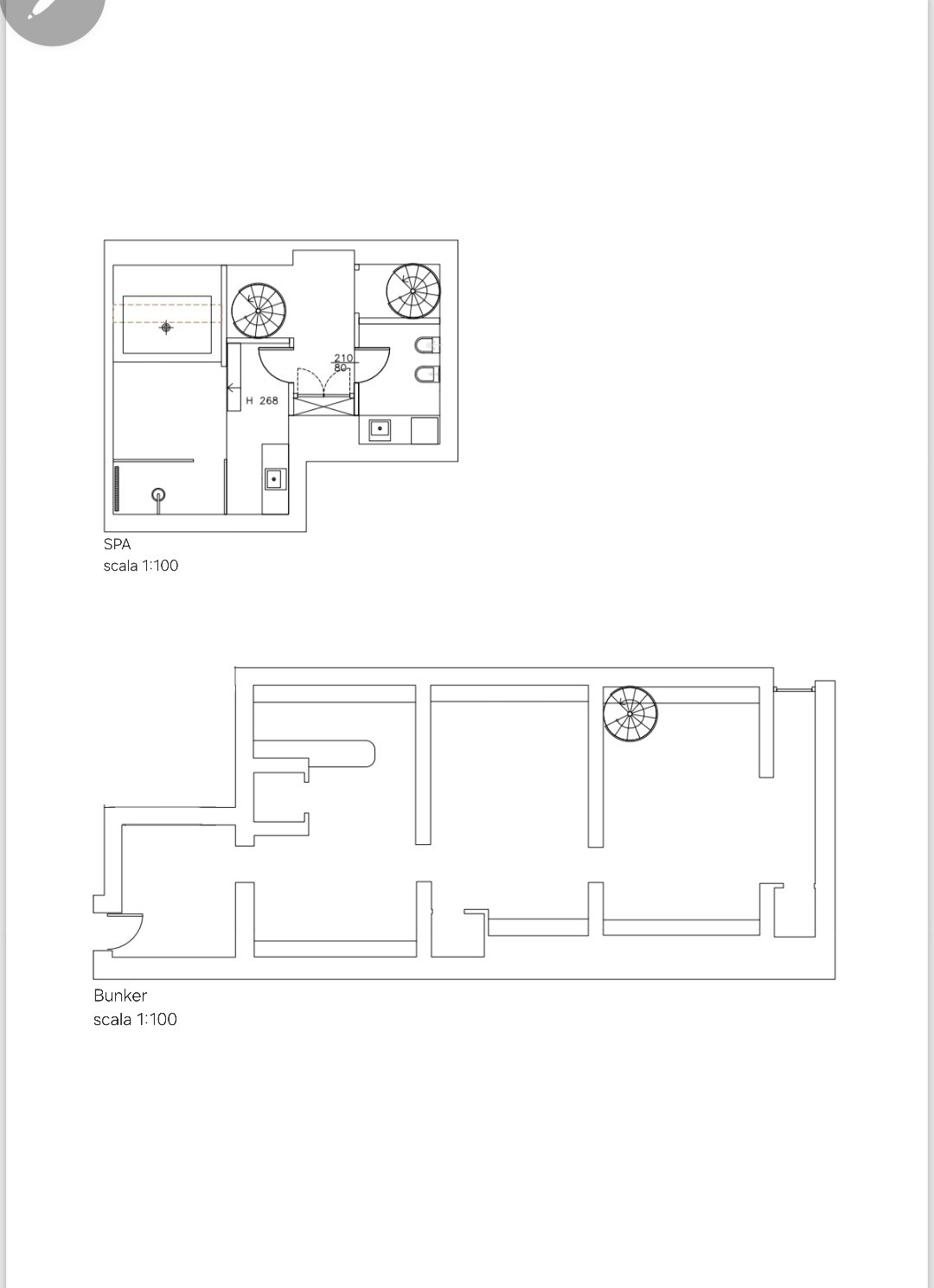 Una scala a chiocciola d’epoca, originale, in ferro battuto, collega il piano principale al livello -1, dove si sviluppa una zona wellness privata con spa dotata di un’ampia vasca in pietra, un grande box doccia indipendente e lavanderia separata con servizi.