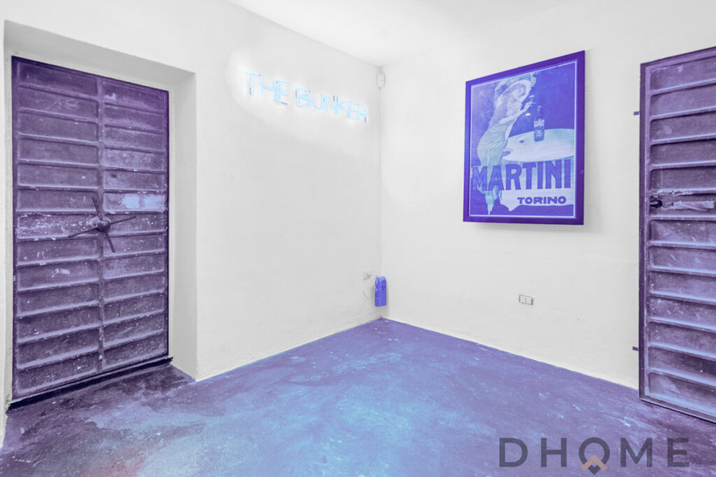 Scendendo ulteriormente al piano -2, troviamo un ambiente davvero unico nel suo genere: originariamente un bunker, quindi di rilevante valore storico, dotato di porte originali, completamente ristrutturato dall’attuale proprietà. In passato ha ospitato importanti eventi legati al mondo della moda e del design e, successivamente, è stato adibito a galleria d’arte, accogliendo artisti di rilievo nazionale e internazionale.