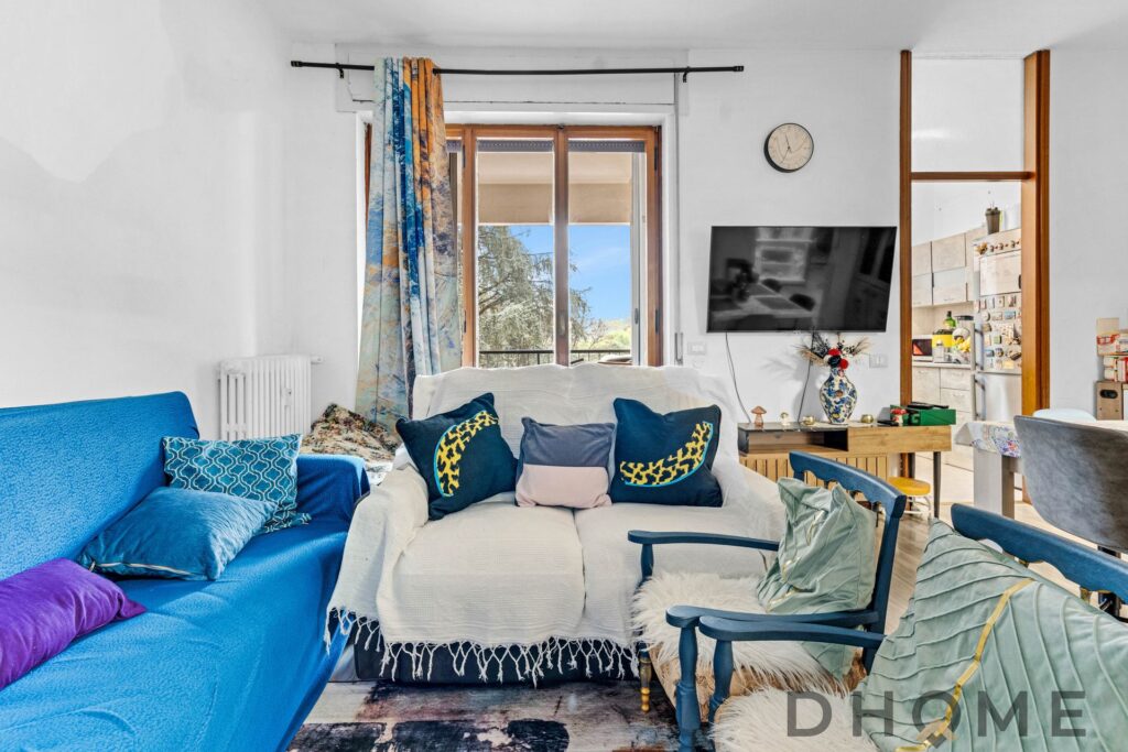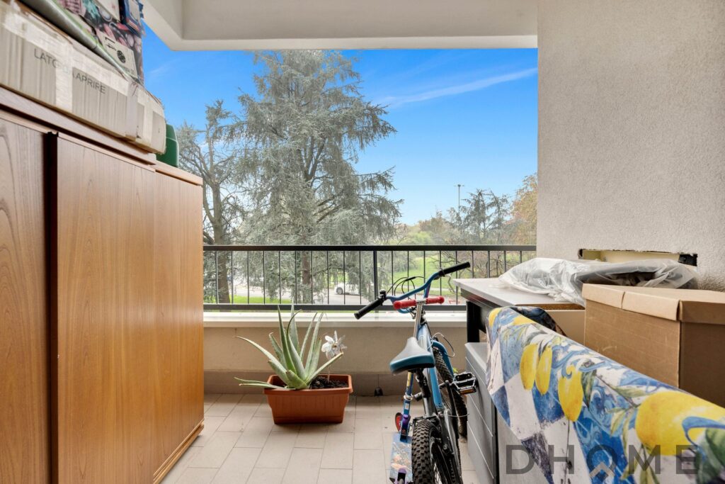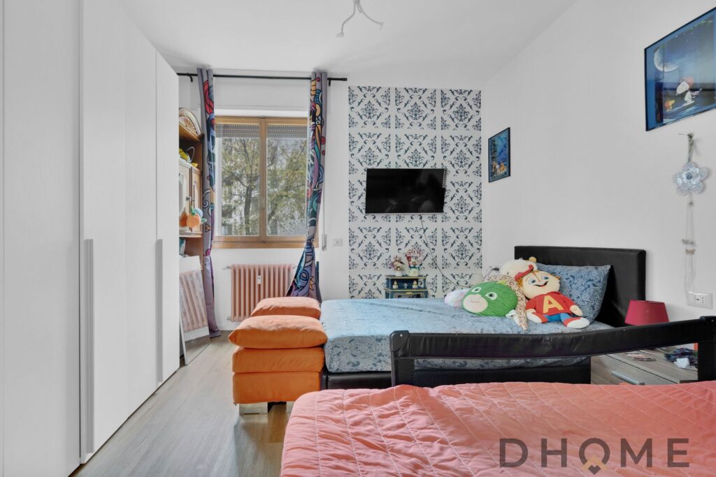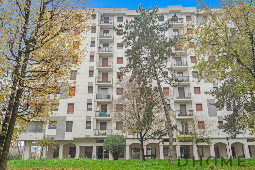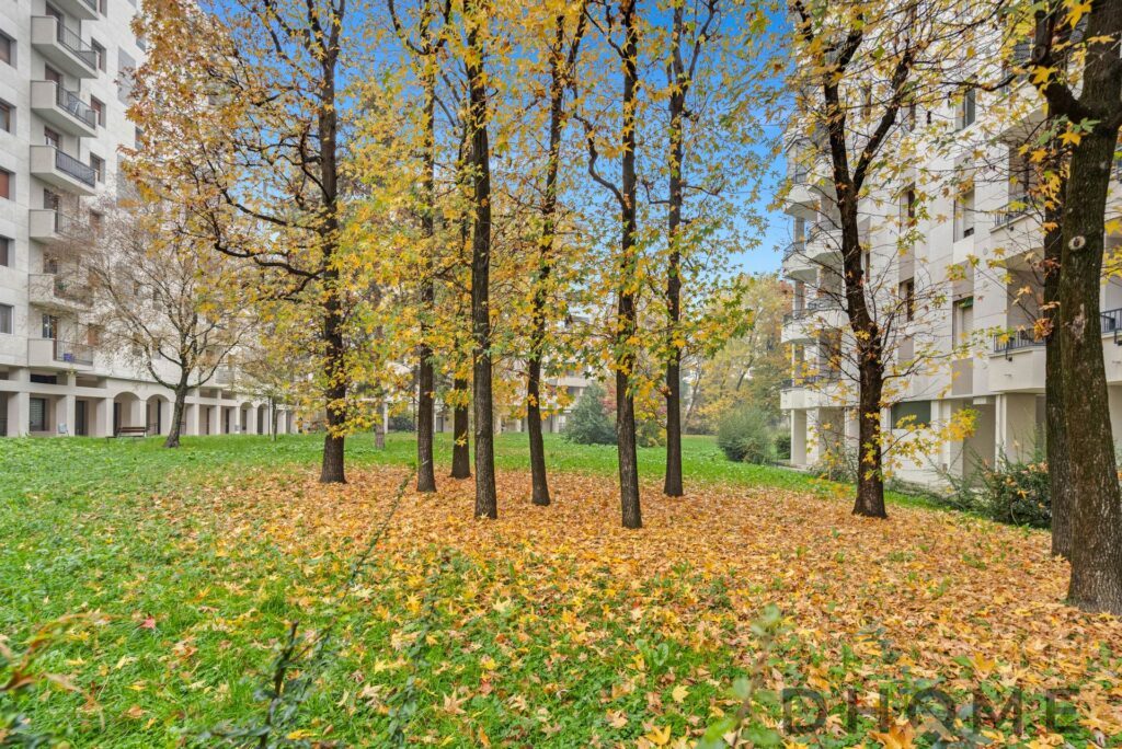 L’ingresso si apre su un comodo disimpegno che conduce alla cucina separata e all’ampio soggiorno, particolarmente luminoso, con accesso al terrazzino con vista parco. La zona notte comprende due camere matrimoniali, di cui una dotata di balcone, oltre a un pratico ripostiglio e a un bagno finestrato con vasca.