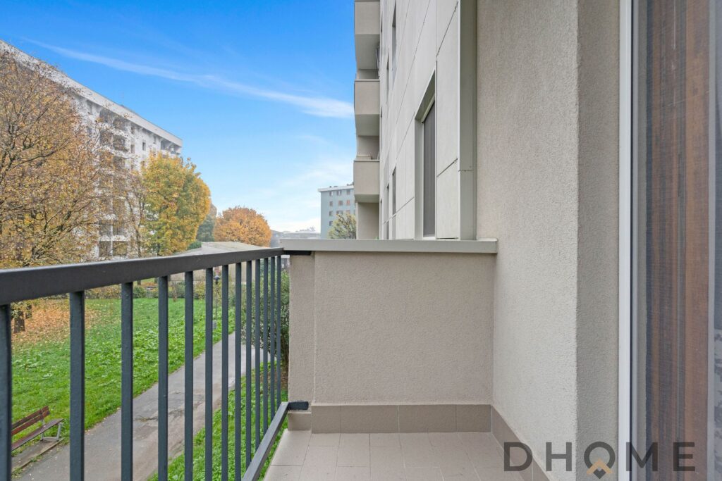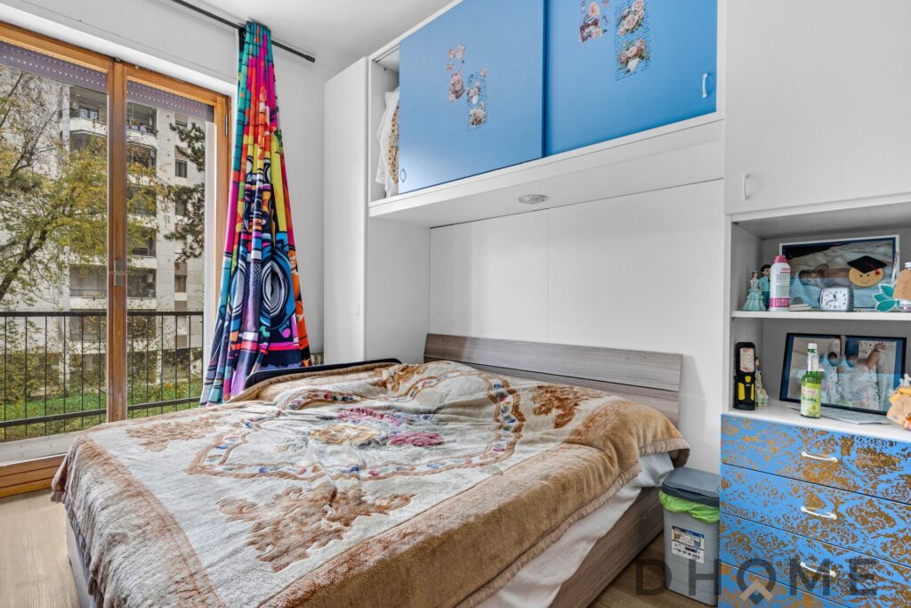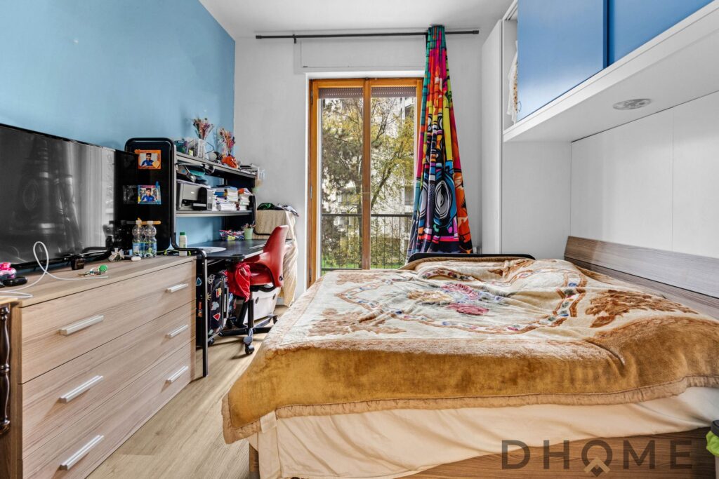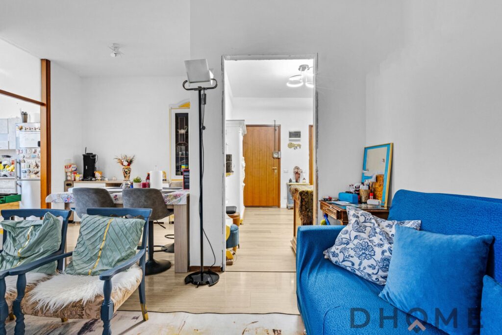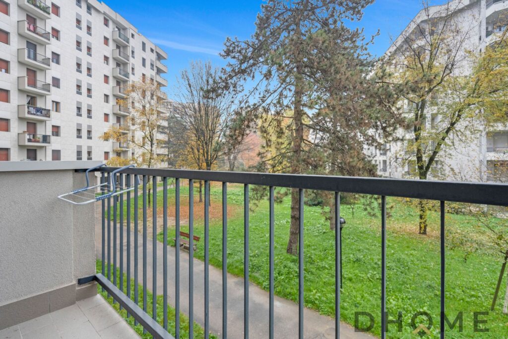 L’ingresso si apre su un comodo disimpegno che conduce alla cucina separata e all’ampio soggiorno, particolarmente luminoso, con accesso al terrazzino con vista parco. La zona notte comprende due camere matrimoniali, di cui una dotata di balcone, oltre a un pratico ripostiglio e a un bagno finestrato con vasca.