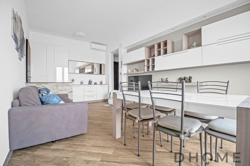Situato al settimo e ultimo piano, servito da ascensore, l’immobile si distingue da subito per la luminosità e la sensazione di ordine che accompagna ogni ambiente.