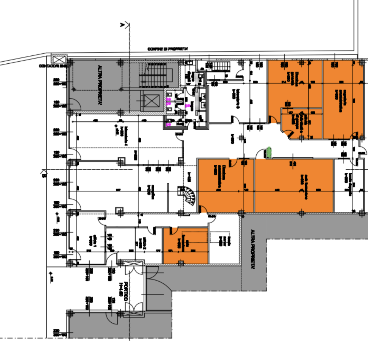Si compone di una grande zona con disimpegno d’ingresso, sale riunioni, uffici, laboratori, archivi, ripostigli, oltre a due uffici con disimpegno al piano soppalco ed a un locale tecnico, situati sopra il corpo uffici.
