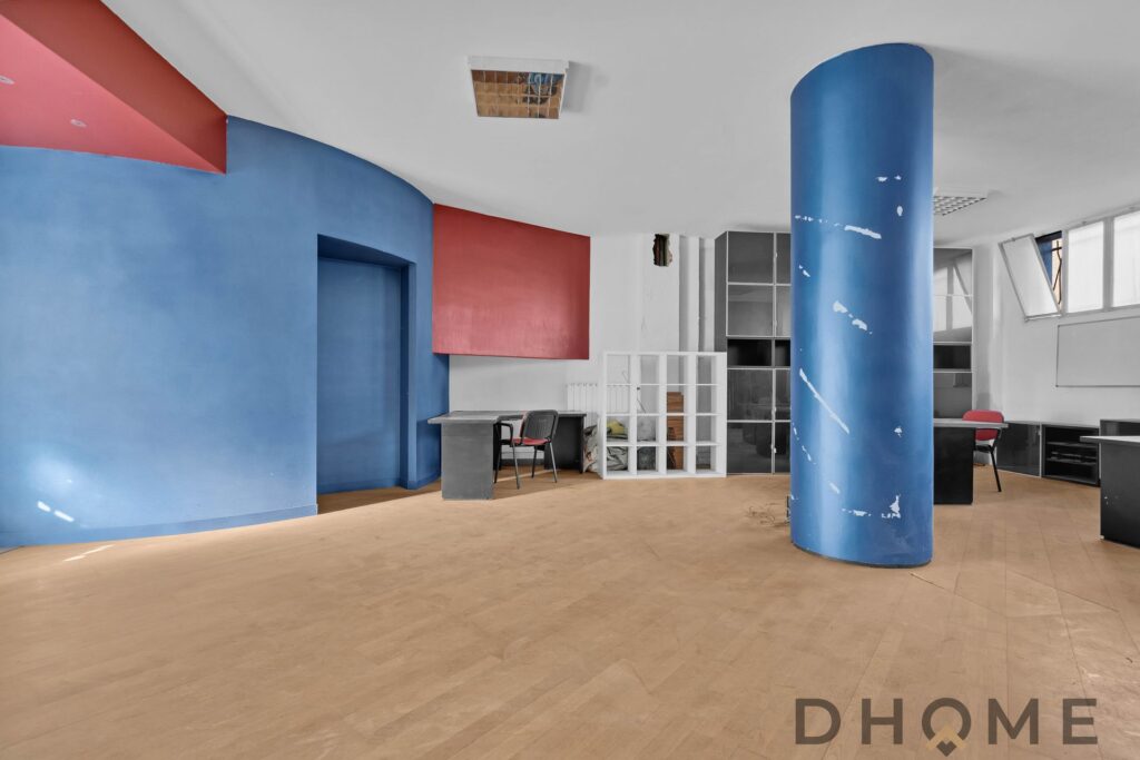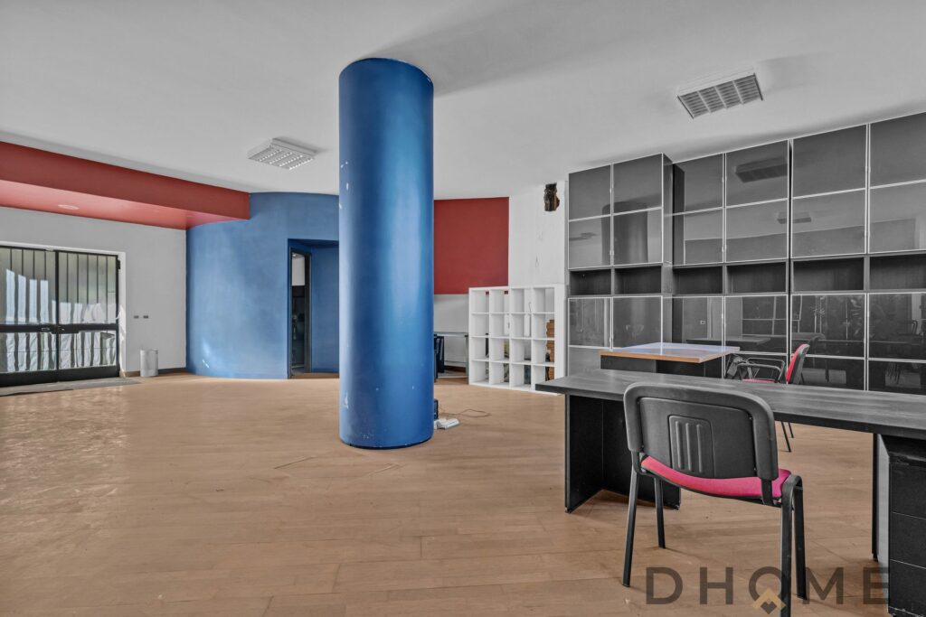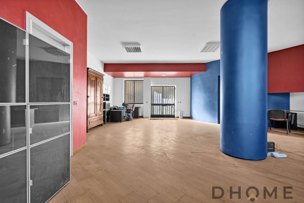 L’ingresso è luminoso e molto ampio, pensato per accogliere con un colpo d’occhio chiaro e ordinato. Al centro dell’ambiente si trova un pilastro dalla linea pulita, un elemento architettonico che valorizza lo spazio senza limitarne la fruibilità. Accanto alla sala principale è presente un locale raccolto, ideale come deposito o archivio.