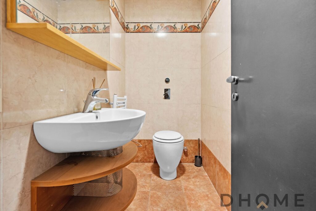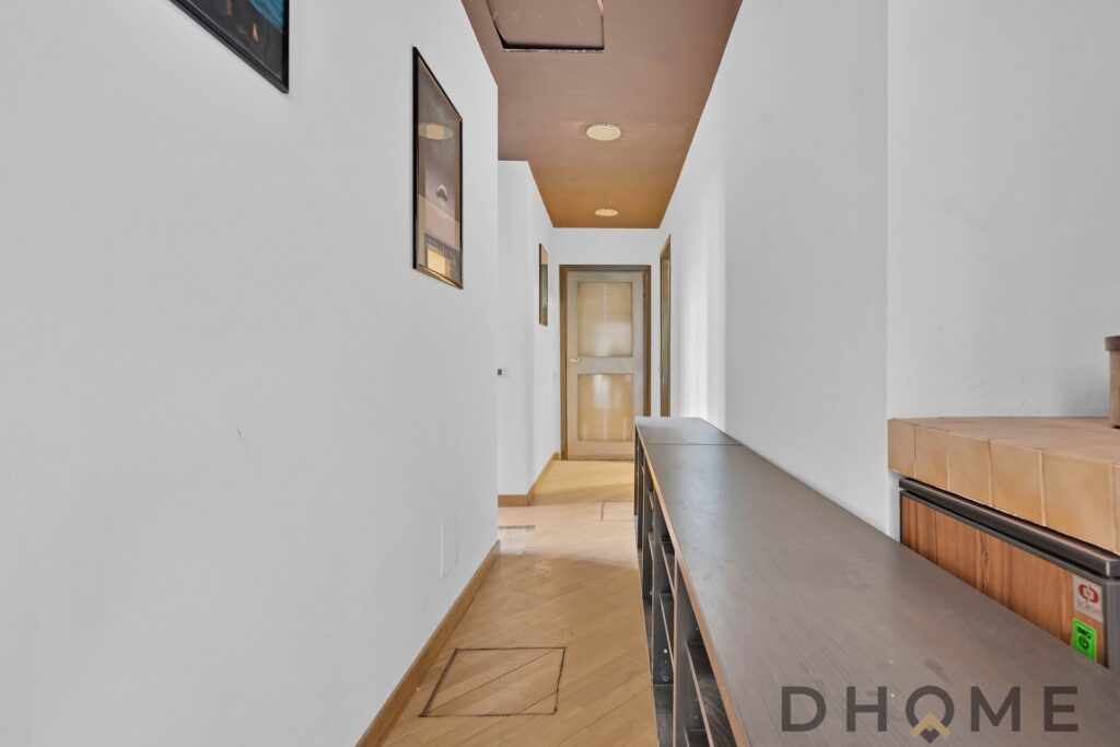 Proseguendo, un corridoio ampio collega i vari ambienti e introduce alla seconda grande sala, un ambiente lineare e facilmente configurabile, completato da un ripostiglio di ottime dimensioni. In quest’area si trova anche un bagno in perfette condizioni, con finiture curate.