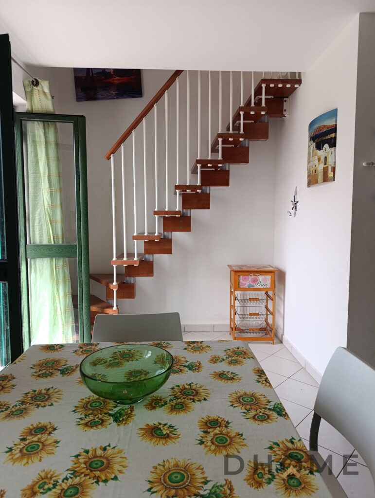 PRIMO PIANO: Salendo al primo piano dalle scale di fianco al Giardino si accede al TERRAZZO che si affaccia sulle PISCINE circondate dai giardini con Palme che rendono suggestiva la vista, da lì si accede all’ingresso che da su l’ampia cucina/soggiorno con una cucina in wengé dotata di forno, frigo, lavastoviglie e accessori, un divano letto ed un tavolo da pranzo estendibile; da li accediamo al disimpegno che divide il bagno, finestrato con box doccia, dalle due camere: una camera da letto matrimoniale con armadio ed una cameretta singola con armadio ed accesso al SECONDO TERRAZZO.