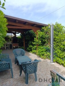 PIANO TERRA: Delizioso giardino di circa 45Mq di cui una metà è stata coperta da una graziosa tettoia in legno dove si trova una organizzata cucina esterna con BARBECUE in pietra, banco con lavello ed un’armadiatura che conserva un comodo frigo esterno per rendere le vostre grigliate esclusive e ben organizzate; nella porzione scoperta trovate una comoda doccia da esterno ed uno spazio relax utile per organizzare le vostre tavolate.