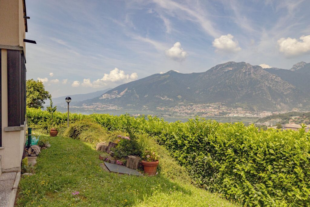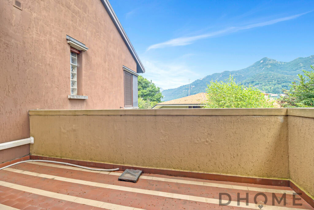 Tramite una elegante scala in legno, si accede al piano superiore, dove abbiamo una deliziosa camera matrimoniale con balcone e suggestiva vista sul Monte Barro e sul Resegone, un confortevole bagno padronale con vasca e una
