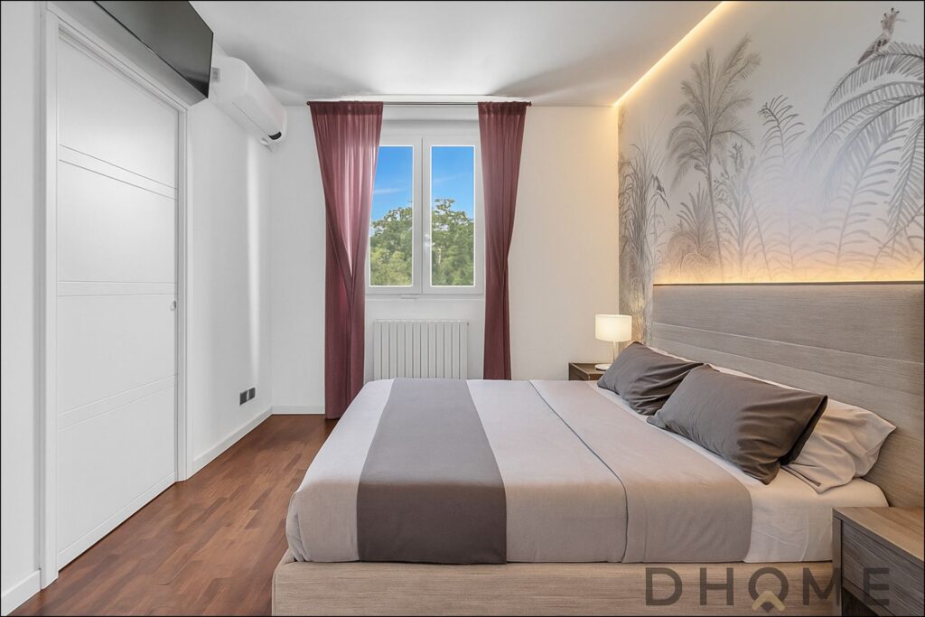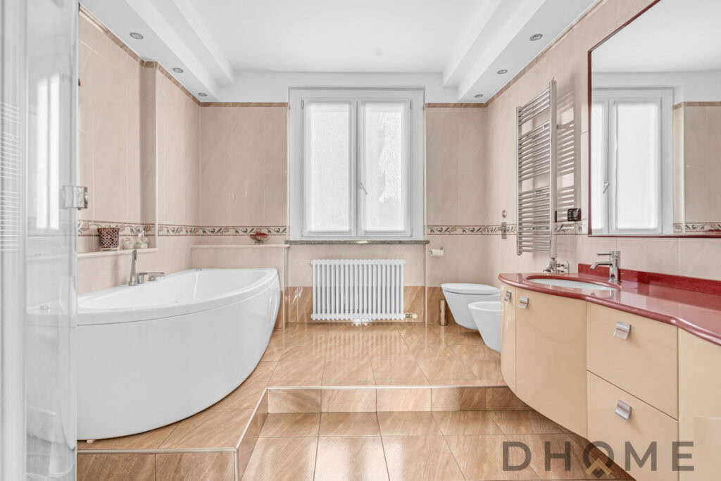 Primo piano: dedicato interamente alla master bedroom, con cabina armadio finestrata, camera matrimoniale e bagno doppio con vasca e doccia idromassaggio, un ulteriore locale cameretta/studio.