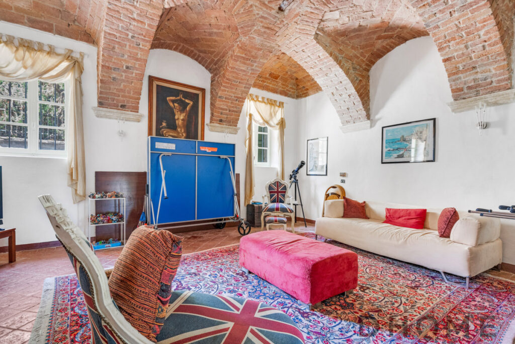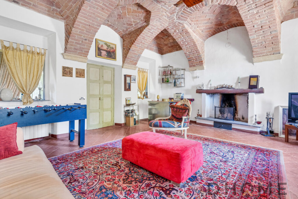 La soluzione si compone dal primo corpo centrale di mq 401 sviluppato dal piano terra e piano primo,con annessa area esterna di 3000 mq con veduta aperta sui colli del Monferrato e parte sottostante ove ritroviamo le antiche grotte a volta e l’antica ghiacciaia.