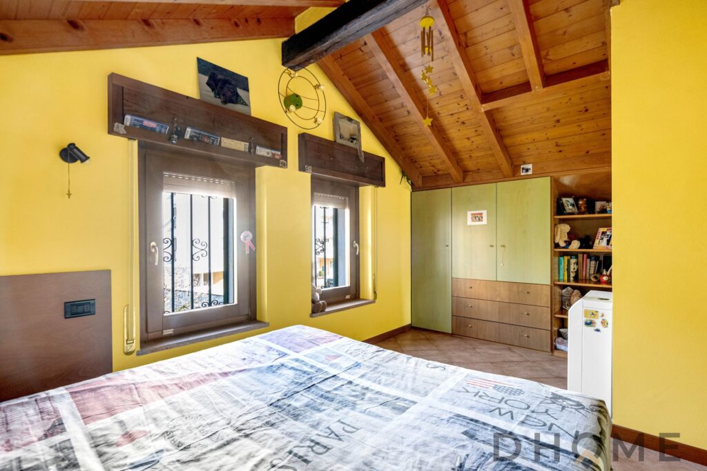 Il primo piano ospita due camere da letto, entrambe spaziose e luminose, e un elegante bagno che serve la zona notte. Le camere, grazie alle ampie finestre, godono di una vista privilegiata sul verde circostante, creando un ambiente sereno e silenzioso, queste camere vantano un incantevole soffitto con travi in legno a vista.