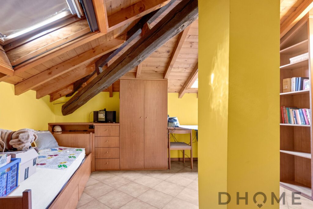 Il primo piano ospita due camere da letto, entrambe spaziose e luminose, e un elegante bagno che serve la zona notte. Le camere, grazie alle ampie finestre, godono di una vista privilegiata sul verde circostante, creando un ambiente sereno e silenzioso, queste camere vantano un incantevole soffitto con travi in legno a vista.