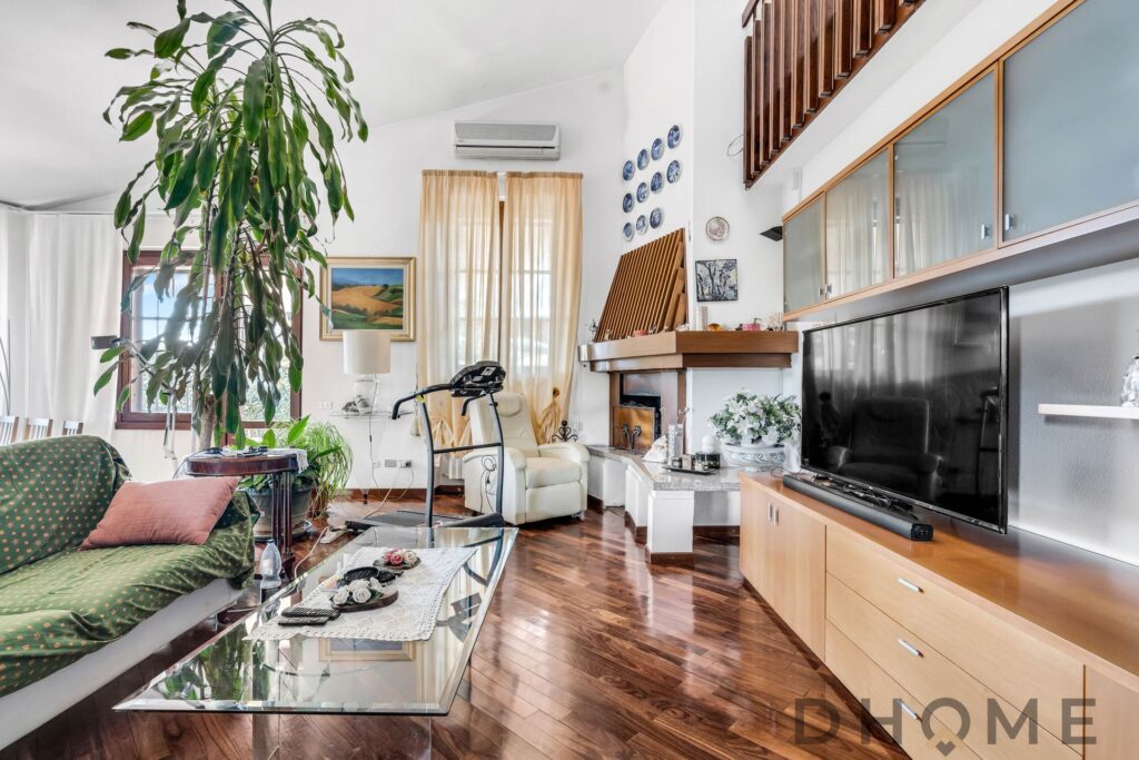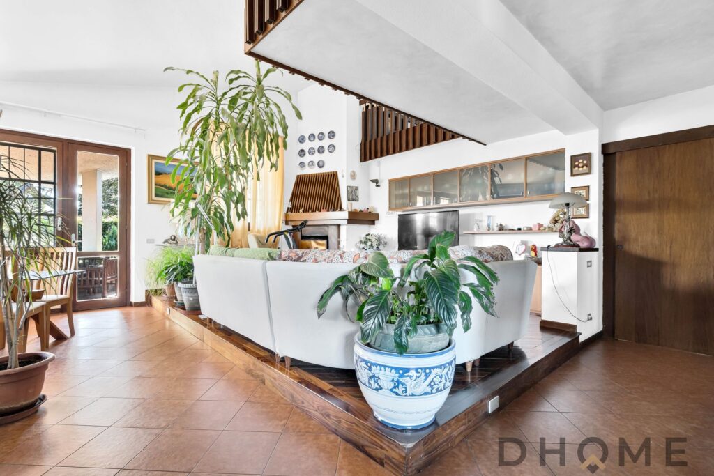– Soggiorno Ampio e Doppio: Un luminoso soggiorno con camino, tutto in parquet, che si apre direttamente sul primo portico, ideale per momenti di relax all’aperto.