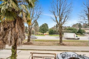 Luminoso soggiorno con porta finestra che si affaccia sul giardino frontale.